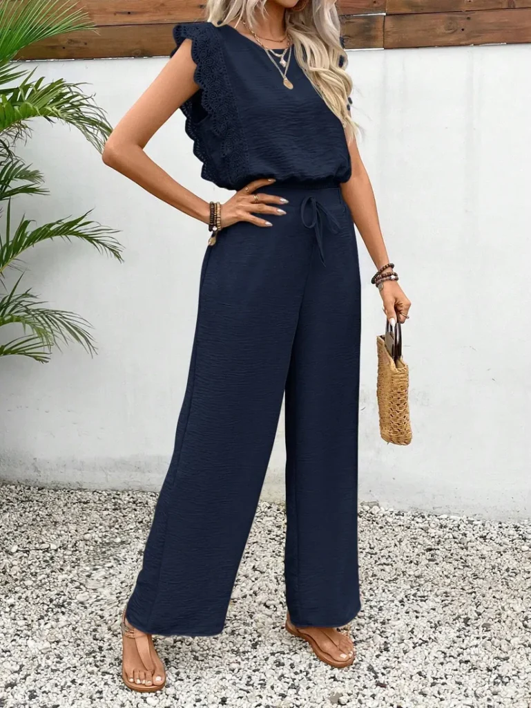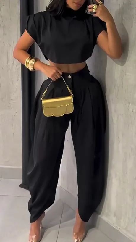 - Chic 2-piece matching set (blouse + wide-leg trousers)