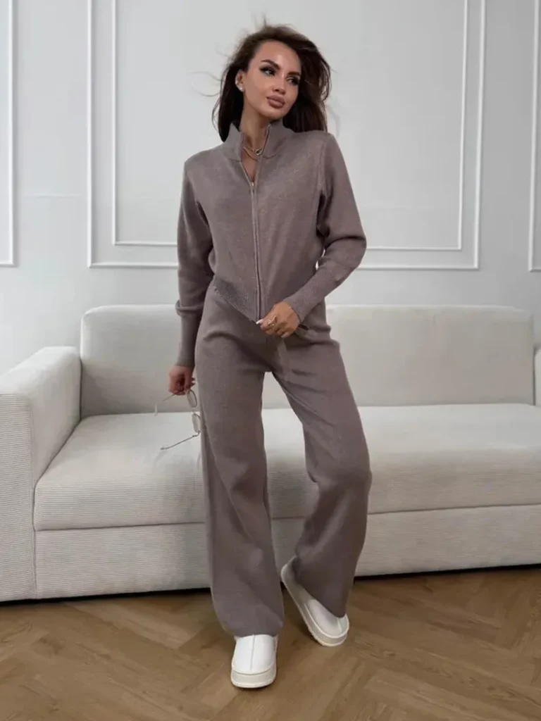 10. Effortless Elegance for Every Season Zip Up Knit Pants Set